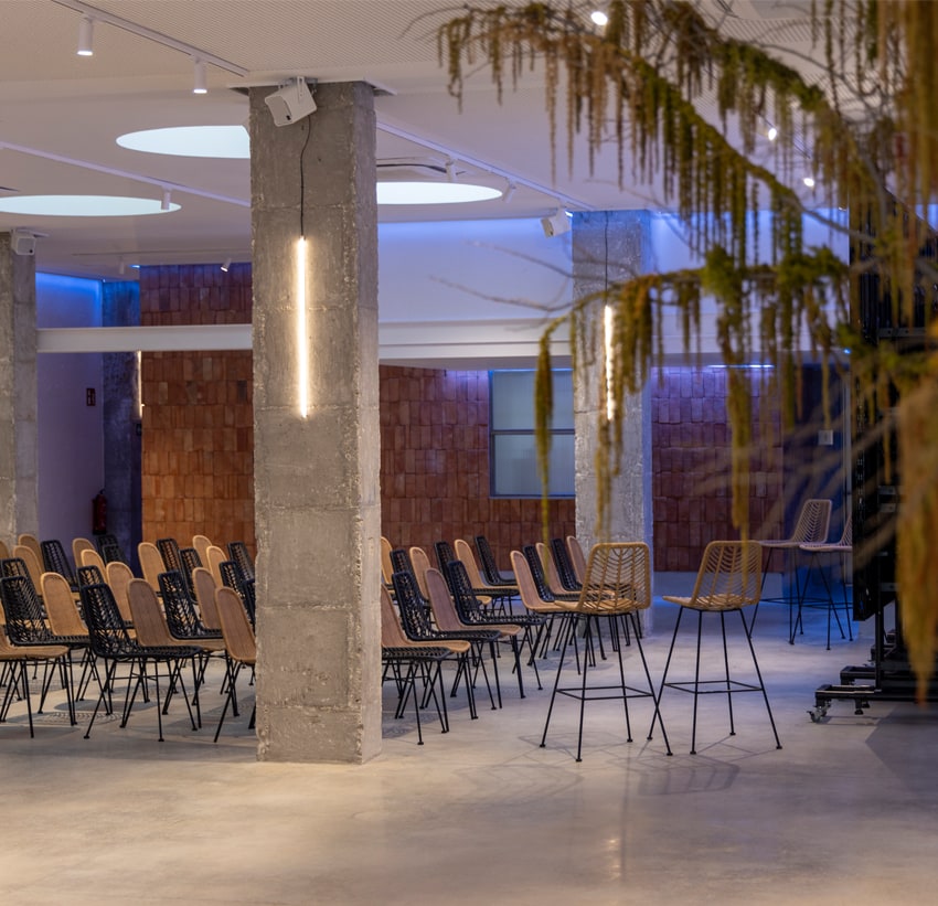 El espacio está concebido para adaptarse a diferentes formatos y necesidades. Cuenta con un sistema tecnológico integrado, un tratamiento acústico profesional y un diseño contemporáneo pensado al detalle para ofrecer confort, ritmo y estabilidad durante todo el evento.